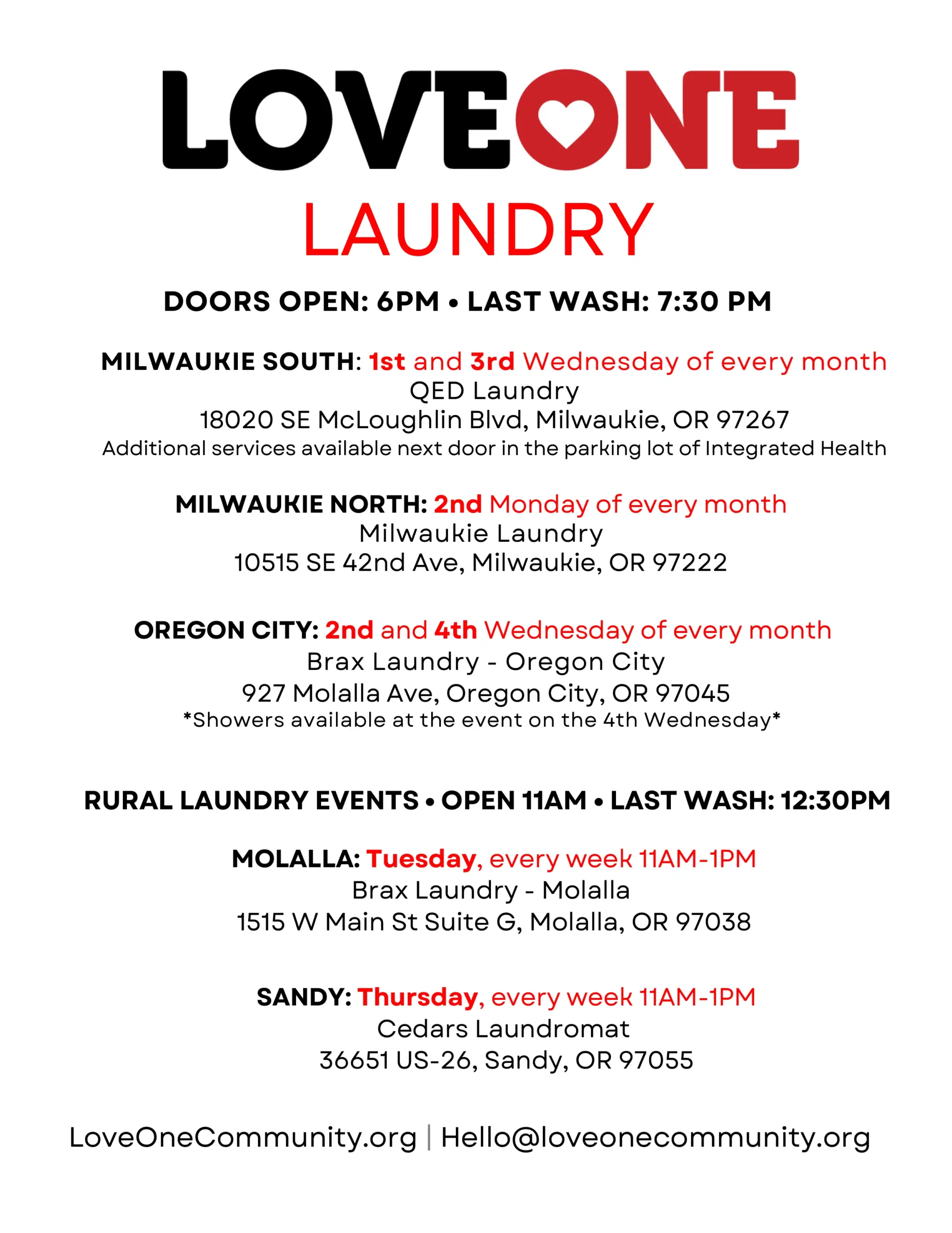 Free laundry services Clackamas County